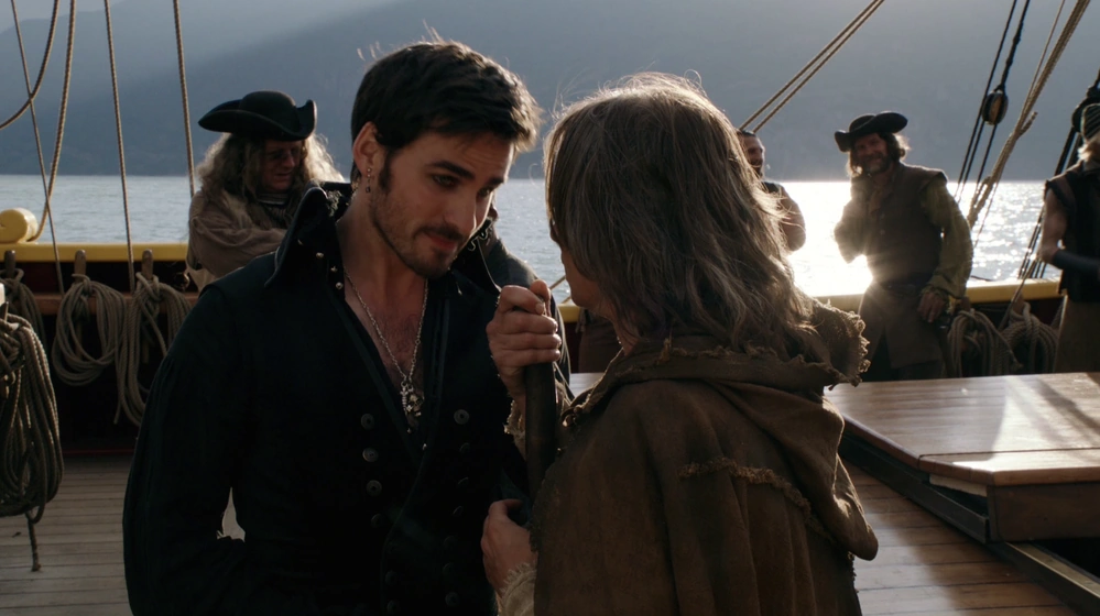 En el Bosque Encantado, una mujer le informa a Rumplestiltskin que Milah ha sido secuestrada por los hombres con que ella estaba con en el pub. Rumplestiltskin va a bordo del barco de los piratas y pide de vuelta a Milah. Cuando el capitán, Killian Jones, propone una lucha por Milah, Rumplestiltskin es demasiado cobarde para recoger la espada, y le implora a Jones: "Por favor, señor, ¿qué le voy a decir a mi hijo?". A lo que Jones responde: "Pruebe la verdad, su padre es un cobarde."