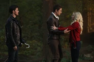 Alors qu'Henry félicite Emma et le vrai Killian pour leur avenir, il convainc le faux Crochet de rester et lui propose de l'aider à retrouver sa fille. Regina décide de rester afin de trouver sa fin heureuse.