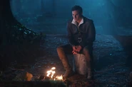 Pendant ce temps, dans une cabane, Regina prépare un repas pour Henry, qui lui pose des questions sur ce qui se passe à Storybrooke mais elle les évite car elle se plaint que le sien n'est pas génial. Crochet de le Monde des Vœux, les rejoint bientôt et suggère qu'ils retournent tous à Storybrooke. Il donne à Henry une fausse note de Cendrillon, mais lorsque le faux Crochet s'en prend à Henry pour le consoler, Emma arrive par un portail et est prête à annoncer à Henry la nouvelle qu'elle est enceinte. Cela rend soudainement le faux Crochet extrêmement bouleversé et il s'enfuit dans les bois et retourne à la taverne, juste à temps pour que le vrai Killian l'attaque. Le faux Killian sort alors un poignard et est poignardé par le vrai Crochet. Lorsque le vrai Killian demande pourquoi, le faux Killian lui dit qu'il voulait retrouver sa fille, qu'il croyait prisonnière. Il espérait qu'Emma l'aiderait. Quand Emma arrive, le vrai Crochet demande à Emma de sauver son sosie, mais la magie d'Emma ne fonctionne pas non plus dans ce domaine, alors elle convainc le faux Crochet d'utiliser sa croyance. Cela fonctionne, alors que la magie d'Emma revient brièvement, lui permettant de guérir le faux Crochet.