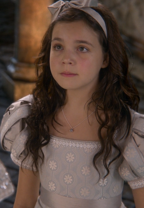 À sept ans, alors que le Roi et la Reine célèbrent leur victoire contre les ogres avec un bal, Blanche-Neige est gardée par sa nourrice Johanna, et surprend dans sa chambre deux invitées qu'elle prend d'abord pour des voleuses. Partageant quelques minutes leurs histoires sur une sorcière cannibale vivant dans une maison en pain d'épices avec son trésor, la princesse prend peur à l'extinction des bougies. Les demoiselles retournent ensuite aux festivités. (Regina Rising) Plus tard dans l'année, l'estimant assez grande, Eva l'emmène à son premier bal. ("Excalibur")