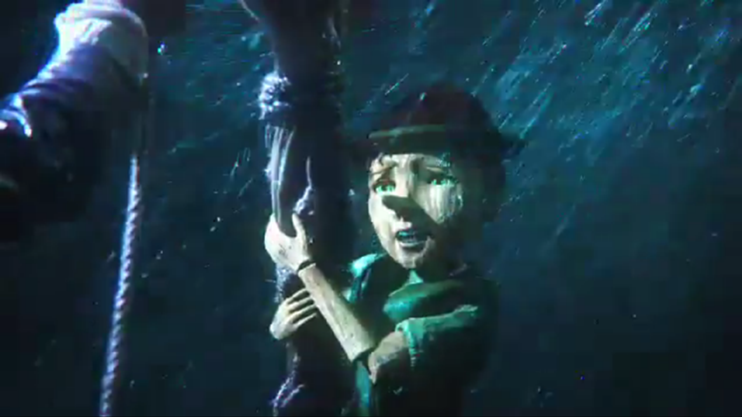 Pinocchio résiste lors de la tempête. ("La Promesse de Pinocchio")