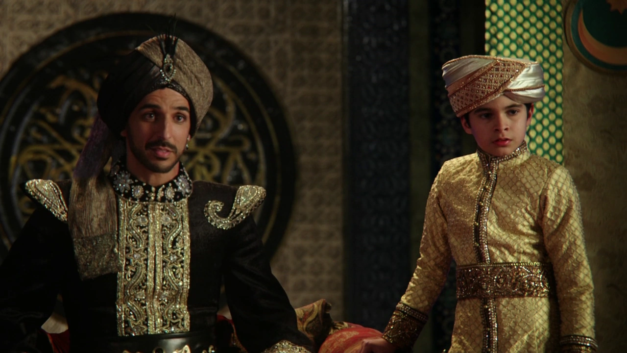 Plusieurs années après, un sorcier se présente au palais. Le Sultan reconnait son fils bâtard, Jafar. Il lui explique qu'il ne sera jamais son fils quand Mirza rentre dans la pièce. Jafar menace le monarque avec un couteau devant son demi-frère mais celui-ci fuit car il ne veut pas se battre contre le sorcier. Ce dernier le tue en utilisant le sceptre serpent. ("Les Liens du Sang")
