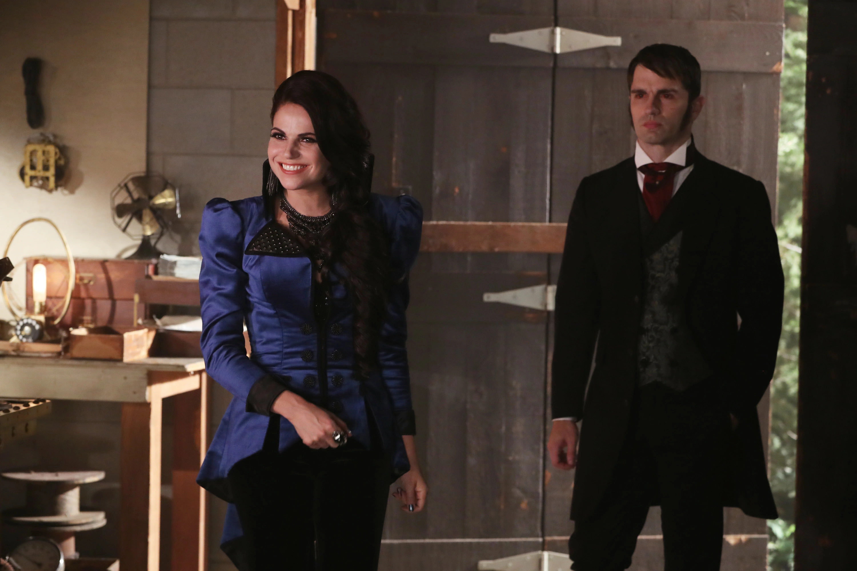 La Reine se rend ensuite à la boutique de M. Gold où elle complimente l'antiquaire sur sa nouvelle coupe de cheveux tout en jouant avec une réplique de sa pomme empoisonnée. Toutefois, le Ténébreux la repousse et Mr Hyde se montre, affirmant que contrairement à son apparence, il ne pourra jamais changer sa personnalité. Ignorant M. Gold qui le somme ainsi que Regina de partir, l'alter ego du Docteur demande au propriétaire de la boutique de lui céder le collier de Mary qu'il a en sa possession. Quand il affirme qu'il ne lui donnera rien en retour, le sorcier voit rouge et l'étrangle magiquement. Mr Hyde et la Reine sont alors pris d'un fou rire, tous deux sachant très bien que le Crocodile sera incapable d'achever sa victime. L'antiquaire est contraint de relâcher son étreinte et ne peut rien faire pour empêcher Mr Hyde de s'emparer du collier, celui-ci affirmant que leur histoire suivra son cours qu'il le veuille ou non. M. Gold rappelle alors à Regina qu'elle a promis de ne pas faire de mal à Belle, mais celle-ci réplique que cette promesse ne concerne en rien Mr Hyde avant de quitter la boutique. ("Le Vrai Méchant")