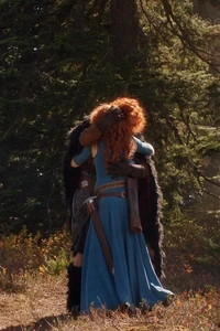 Dans le passé, Merida apprend ce qu'est la bravoure et l'honneur tandis qu'elle s'entraîne au combat et cavale aux côtés de son père Fergus jusqu'à la bataille qui lui coûta la vie.