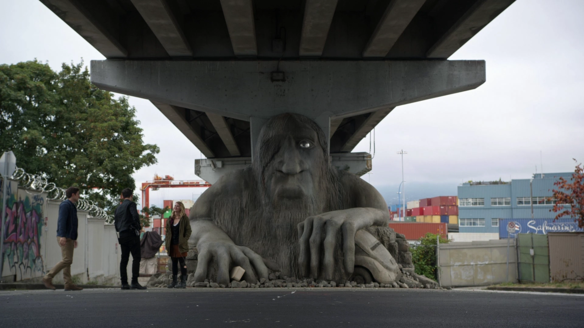 - Vancouver's Heatley Avenue Bridge at 704 Alexander Street doubles as Seattle's Aurora Bridge for the show. A copy of Seattle's Fremont Troll, which is known for clutching a Volkswagen Beetle similar to Emma's yellow bug, was recreated under the bridge.[2] The show's version of the statue consisted of four pieces and was brought to the location every time they needed to shoot there.[1]